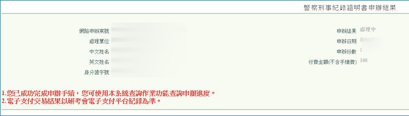 - 申請良民證需要2-3天時間,可先在網路上申請,或透過以下連結申請,節省時間。